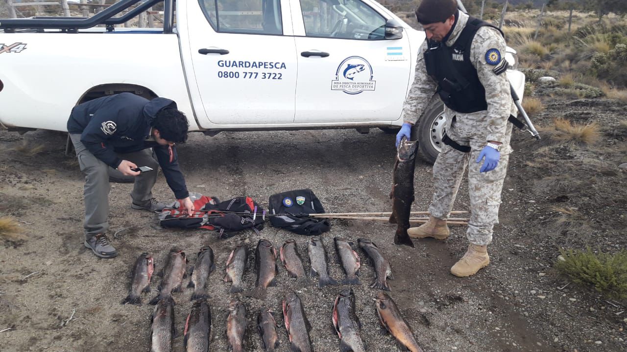 La fuerza policial dio intervención a los inspectores de la Mesa Honoraria de Pesca Deportiva, quienes procedieron a labrar las infracciones correspondientes, como también secuestrar los ejemplares capturados por los furtivos.(El Cordillerano)