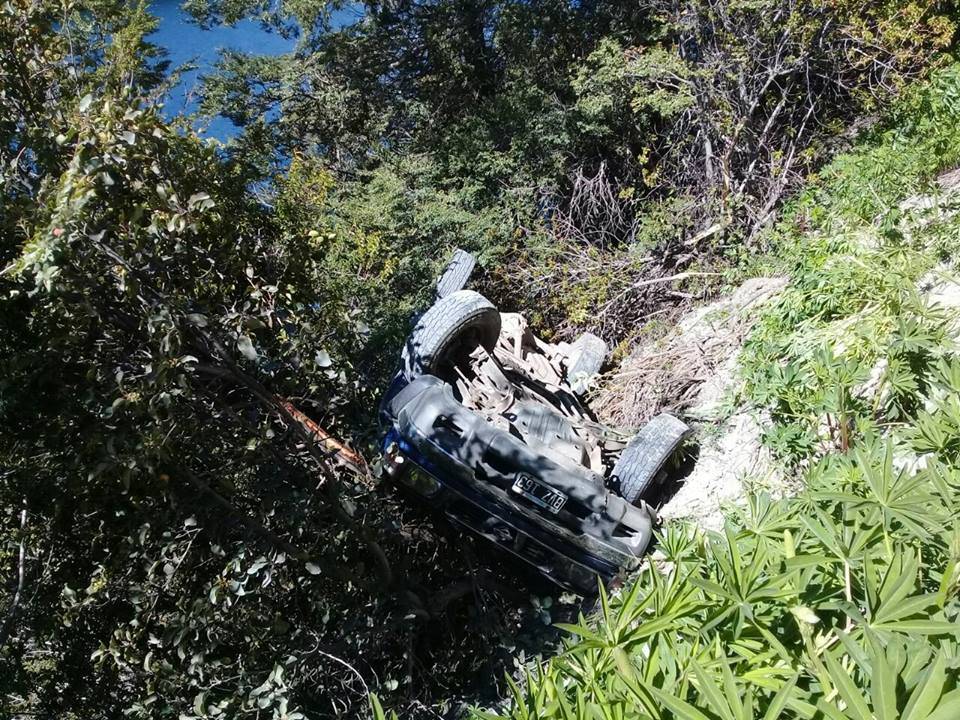 El hecho ocurrió en inmediaciones de Playa Negra, camino al cerro Tronador. La camioneta cayó al precipicio y la contuvo la densa vegetación.