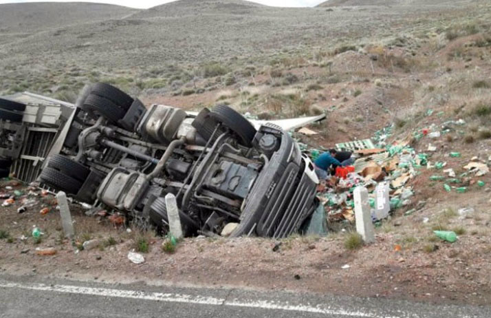 Un impresionante vuelco de un camión cargado de gaseosas se produjo este martes, minutos antes de las 8, en la Ruta 237. Ocurrió en cercanías de Piedra del Aguila, en la zona conocida como Corral de Piedra.