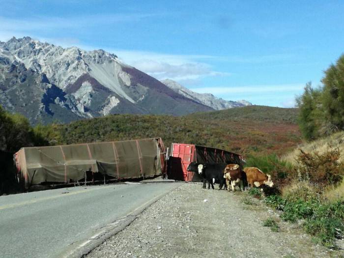 Un camión que transportaba ganado volcó en la Ruta 40, entre Bariloche y El Bolsón, a la altura del lago Guillelmo. No hubo heridos.