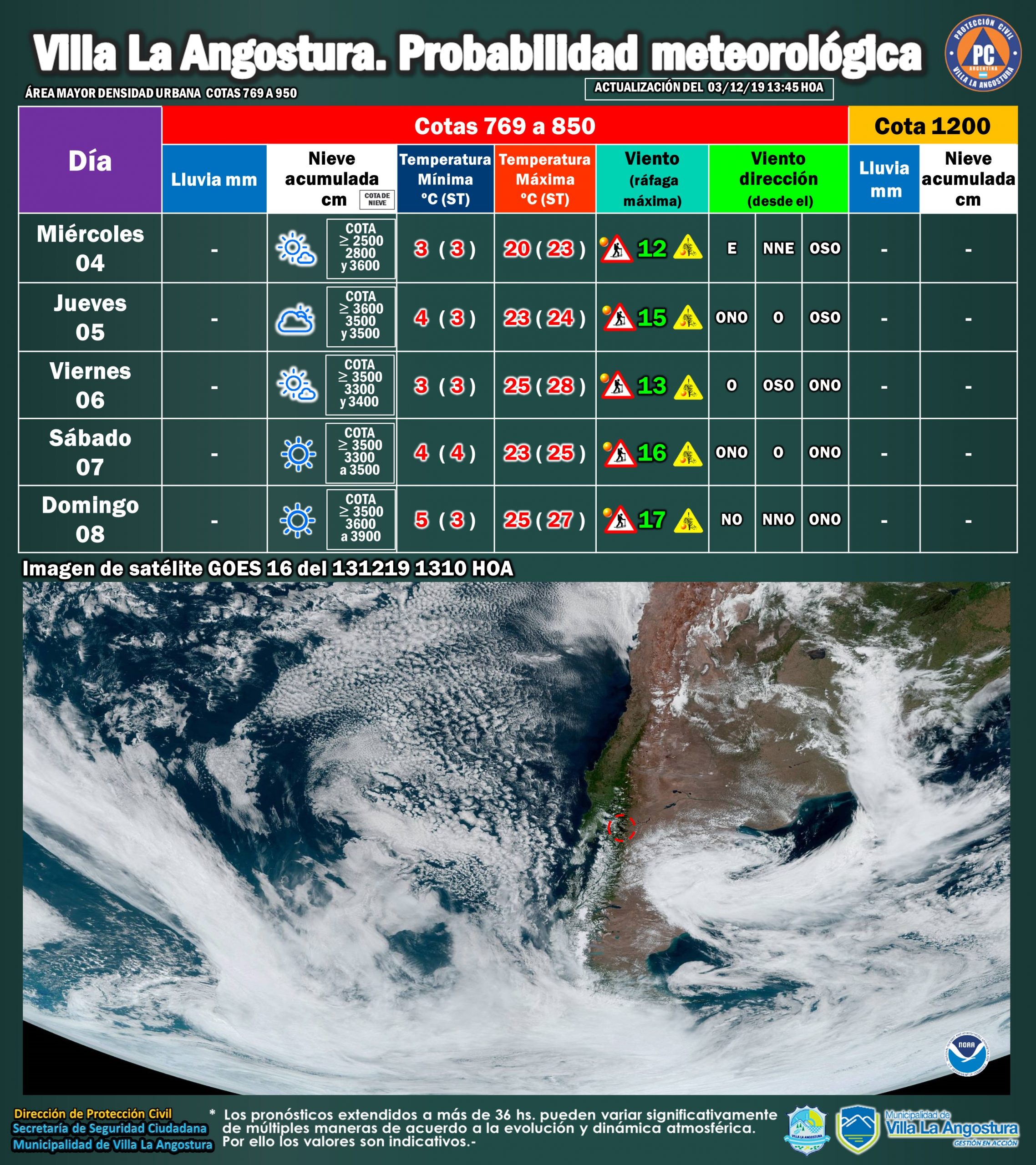 Días de pleno sol -con temperaturas que llegarìan hasta los 28º - se anticipan en Villa la Angostura de acuerdo al pronóstico de Protección Civil del Municipio.