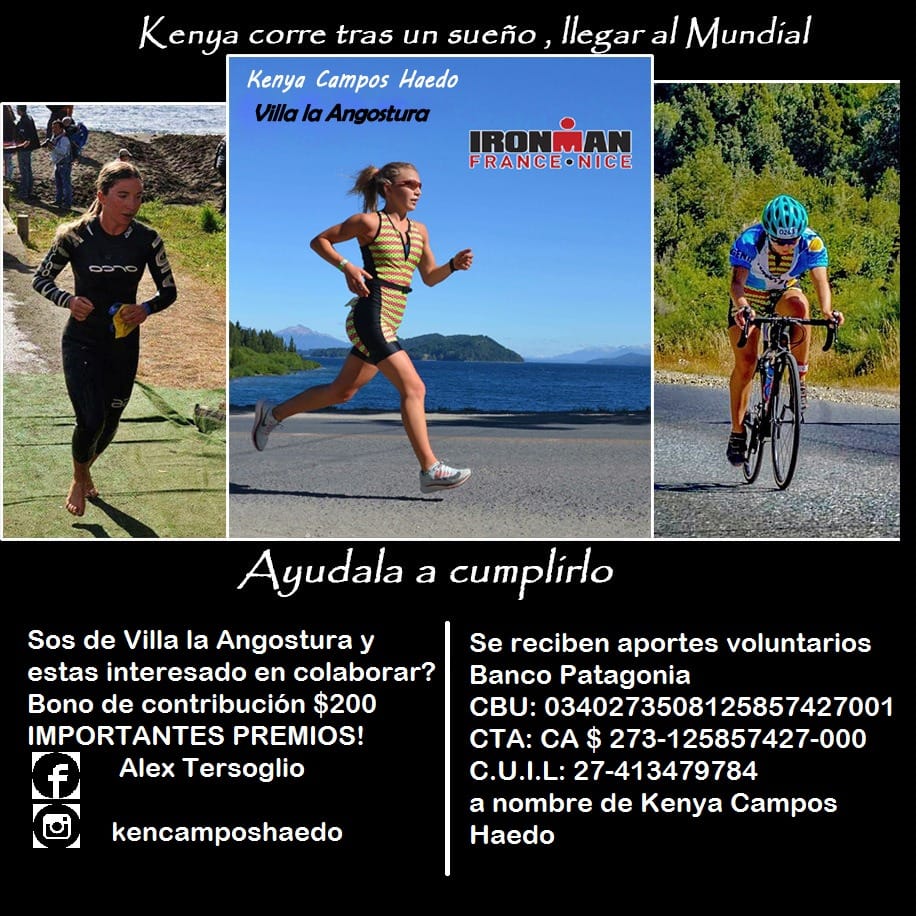 Continúa la campaña solidaria para que Kenya Campos Haedo represente a Villa la Angostura, y a la provincia de Neuquén, en el Mundial de Ironman 70.3.