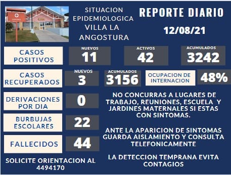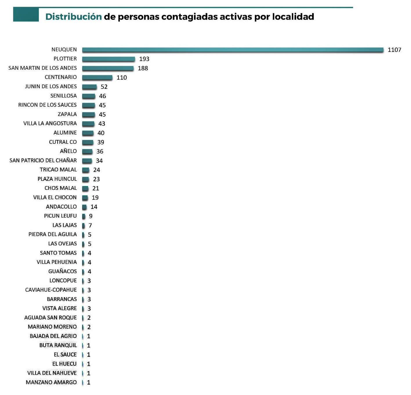 En el caso de Villa la Angostura durante la última semana comenzó a subir la cantidad de casos activos, llegando a ser 42 este jueves. Si bien preocupa esta tendencia, está muy lejos de los casi 800 que llegó a tener la localidad en el peor momento de la pandemia.