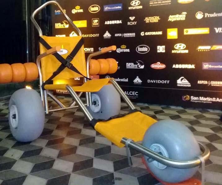 Se trata de un prototipo que consiste en una silla de caño con elementos de flotabilidad que permite que los beneficiarios puedan ingresar al agua y disfrutar de ríos y lagos, mediante una iniciativa creada por dos jóvenes electromecánicos: Juan Manuel Abdala y Exequiel Guiñez. La silla está equipada de manera tal que permite la adaptación a distintos tipos de superficies.