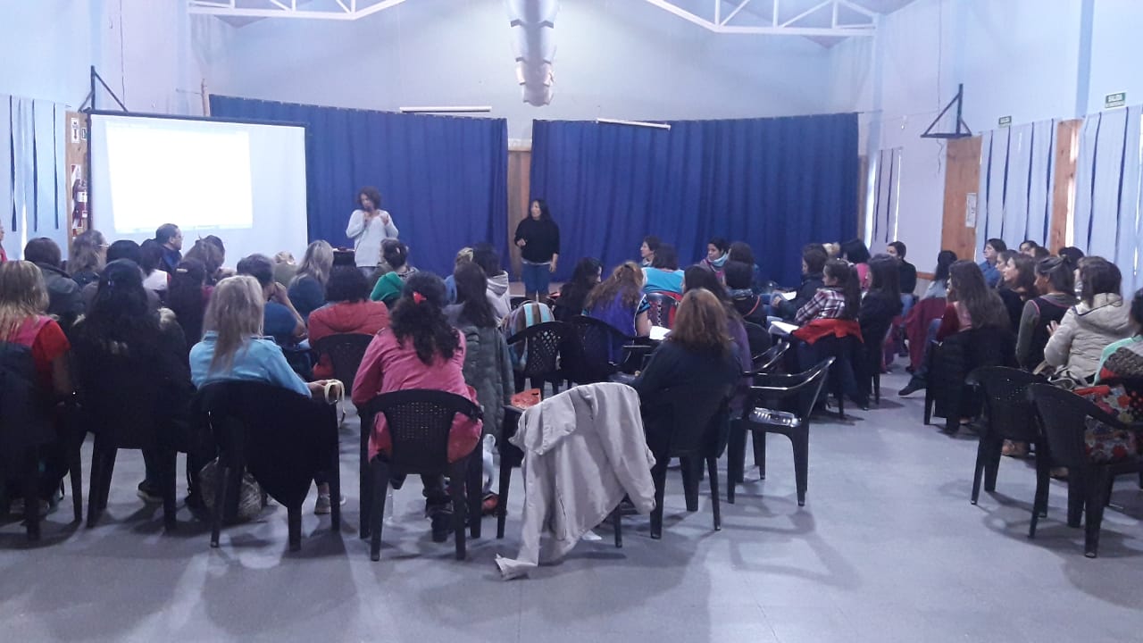 La licenciada Laura Jaramillo del equipo psicosocial del hospital local y la lic. María Ana Gonzalez Villar del Equipo Tecnico.de la Secretaria de Desarrollo Social, brindaron una charla taller desde la perspectiva de género sobre las leyes provinciales 2302 de protección de la niñez y la adolescencia, la ley.2785 de violencia familiar y la ley 2786 de violencia hacia la mujer.