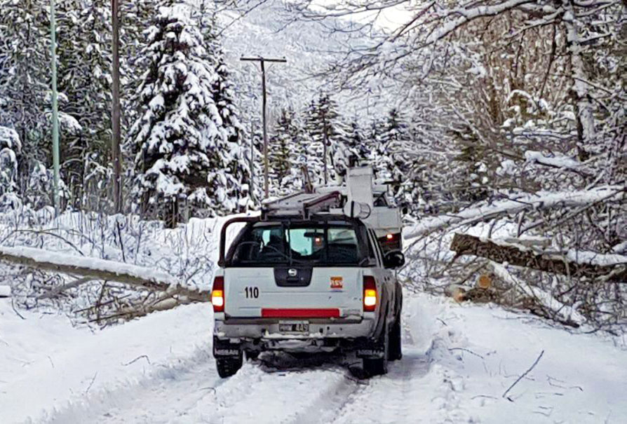 En San Martín de los Andes la caída de ramas de gran porte debido al peso de la nieve produjo la falla de dos alimentadores, el 103 y el 104.