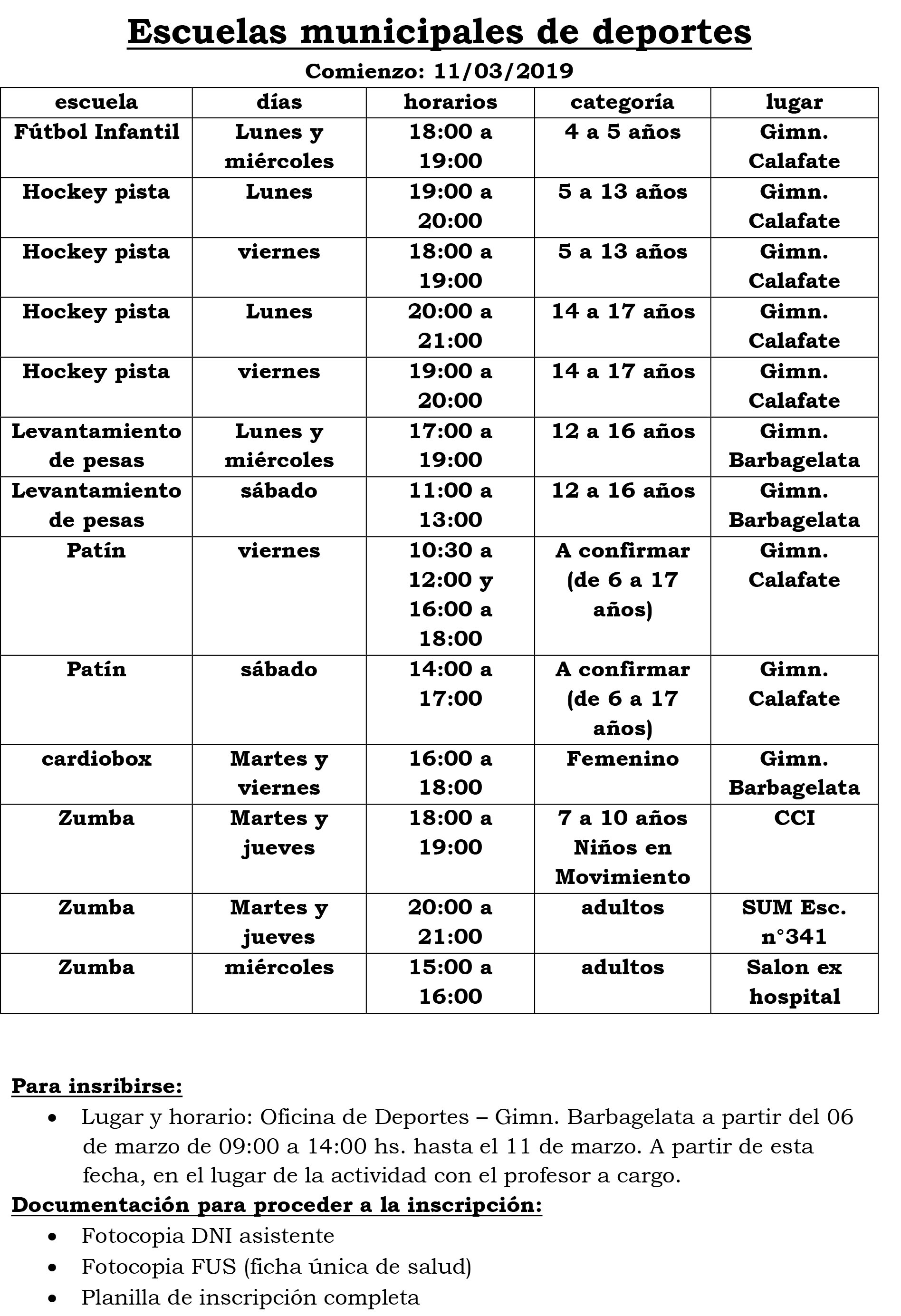 Para inscribirse en alguna de las disciplinas deportivas se deben dirigir al gimnasio Barbagelata en el barrio El Once.