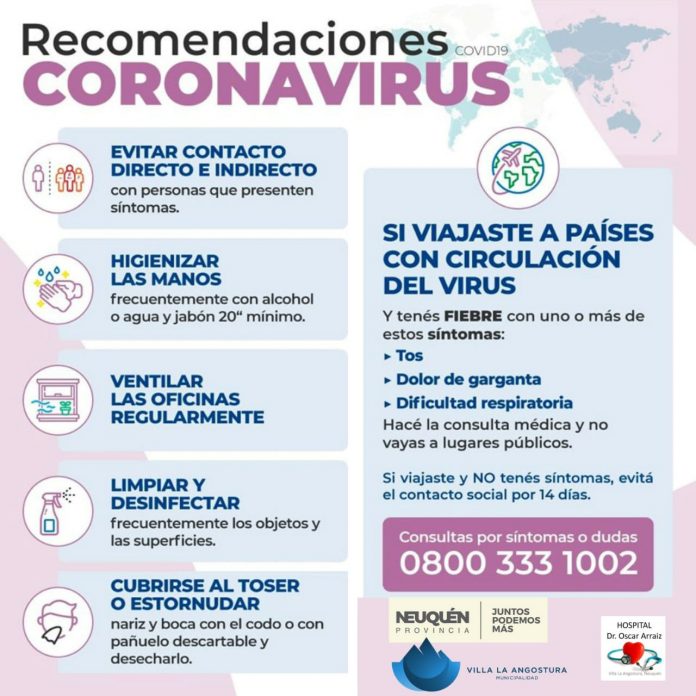 El municipio de Villa La Angostura informa que se encuentra trabajando en sintonía con el modelo de protocolo preventivo aplicado por la Provincia de Neuquén frente al Coronavirus.