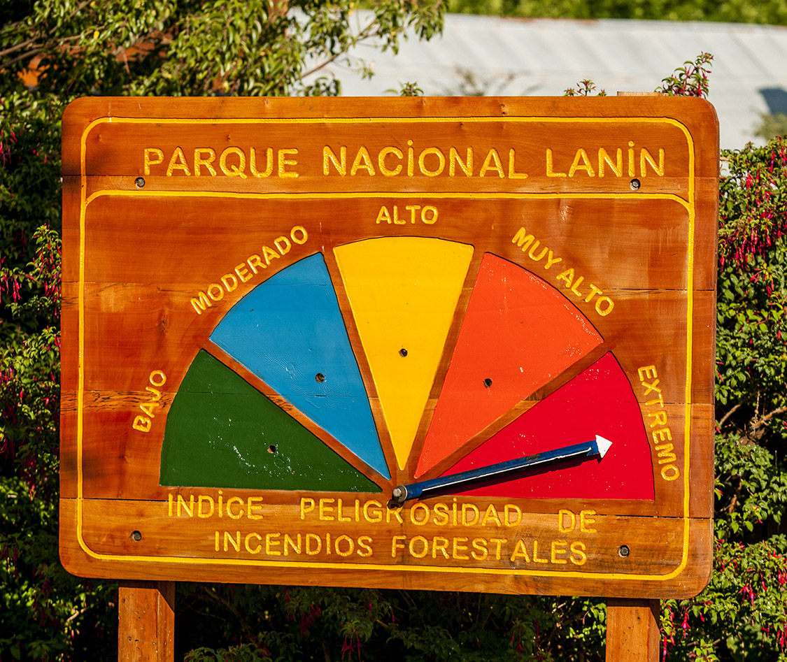 Estos tableros indicativos se encuentran en lugares visibles de las áreas de uso público y en las portadas de ingreso a los parques nacionales. Sólo se puede hacer fuego en los lugares habilitados, cuando el índice de riesgo es BAJO o MODERADO.