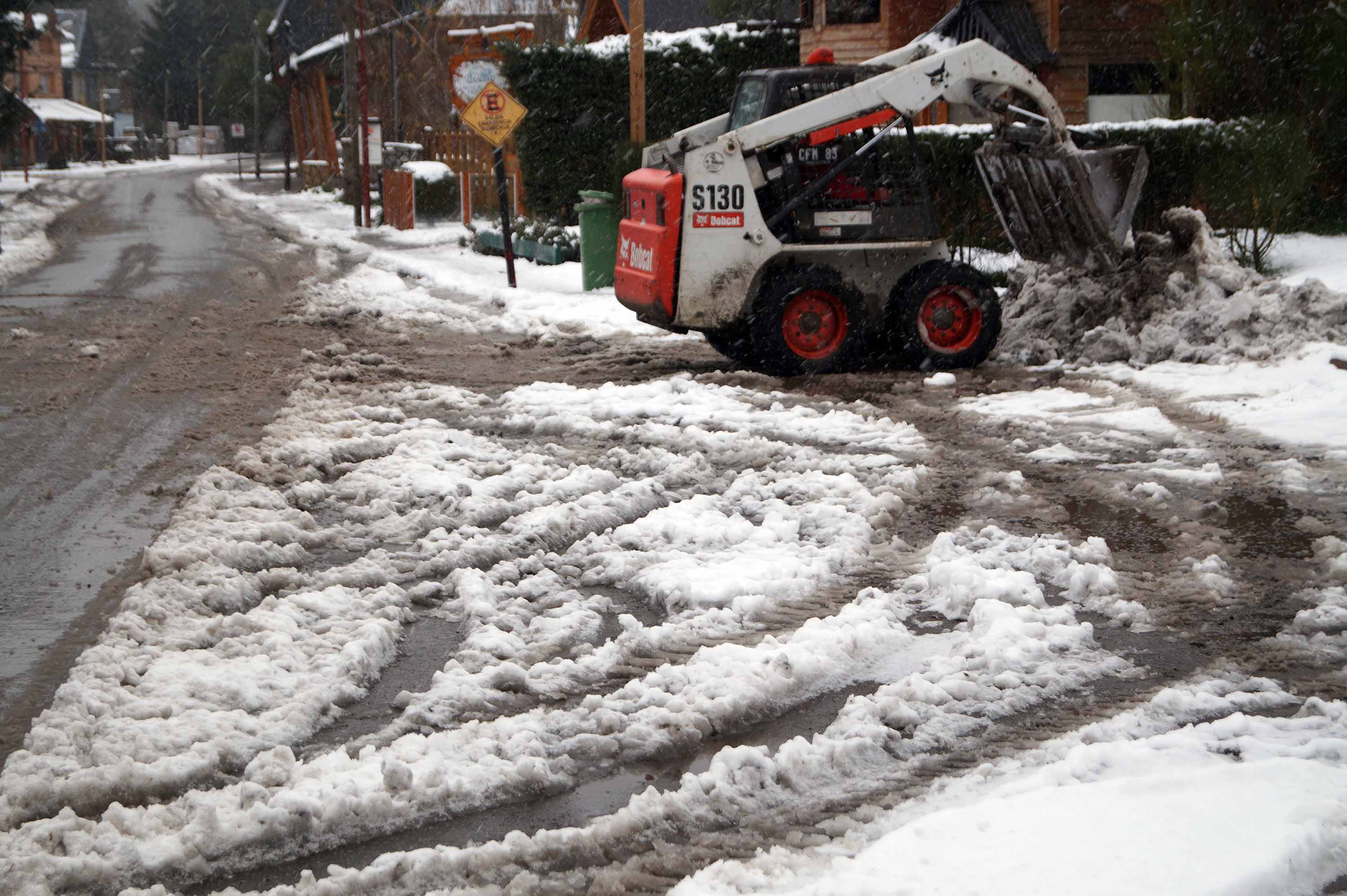 Una cuadrilla tira sal en el camino al puerto. También trabajan en el retiro de residuos forestales caídos en distintas calles.