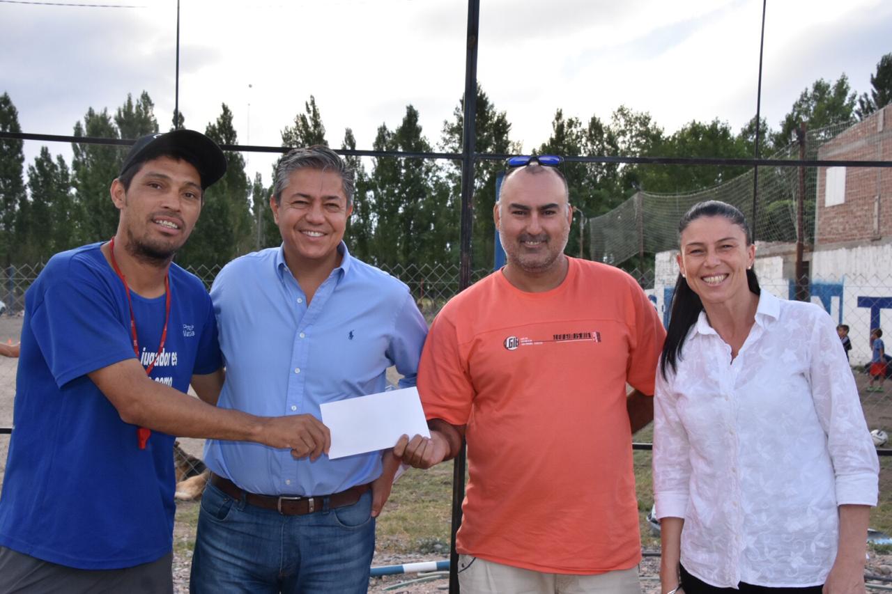 El vicegobernador  entregó un aporte de la Legislatura provincial a la Asociación Civil y Deportiva Alas Argentinas de Plottier para terminar el techo del merendero donde un grupo de padres se reúne, de manera solidaria, para ofrecer la merienda a los chicos que asisten diariamente a la institución.