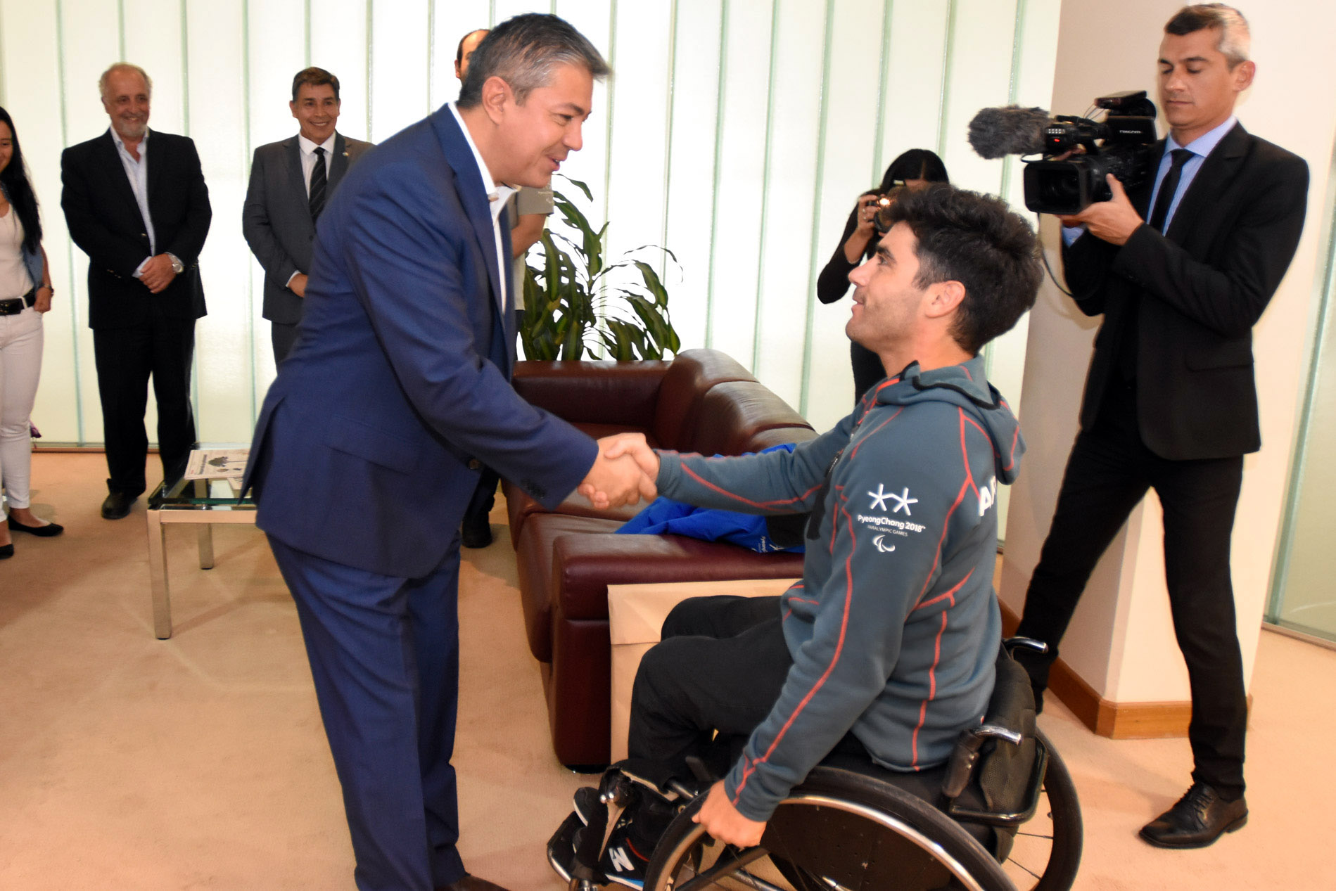 El vicegobernador recibió al equipo neuquino que participó de los Juegos Paraolímpicos de Pieonchang 2018 en Corea del Sur y entregó una medalla de la Legislatura al deportista paraolímpico en la disciplina Esquí Alpino Enrique Plantey como Deportista Destacado Neuquino, en reconocimiento a su trayectoria, dedicación y logros obtenidos.