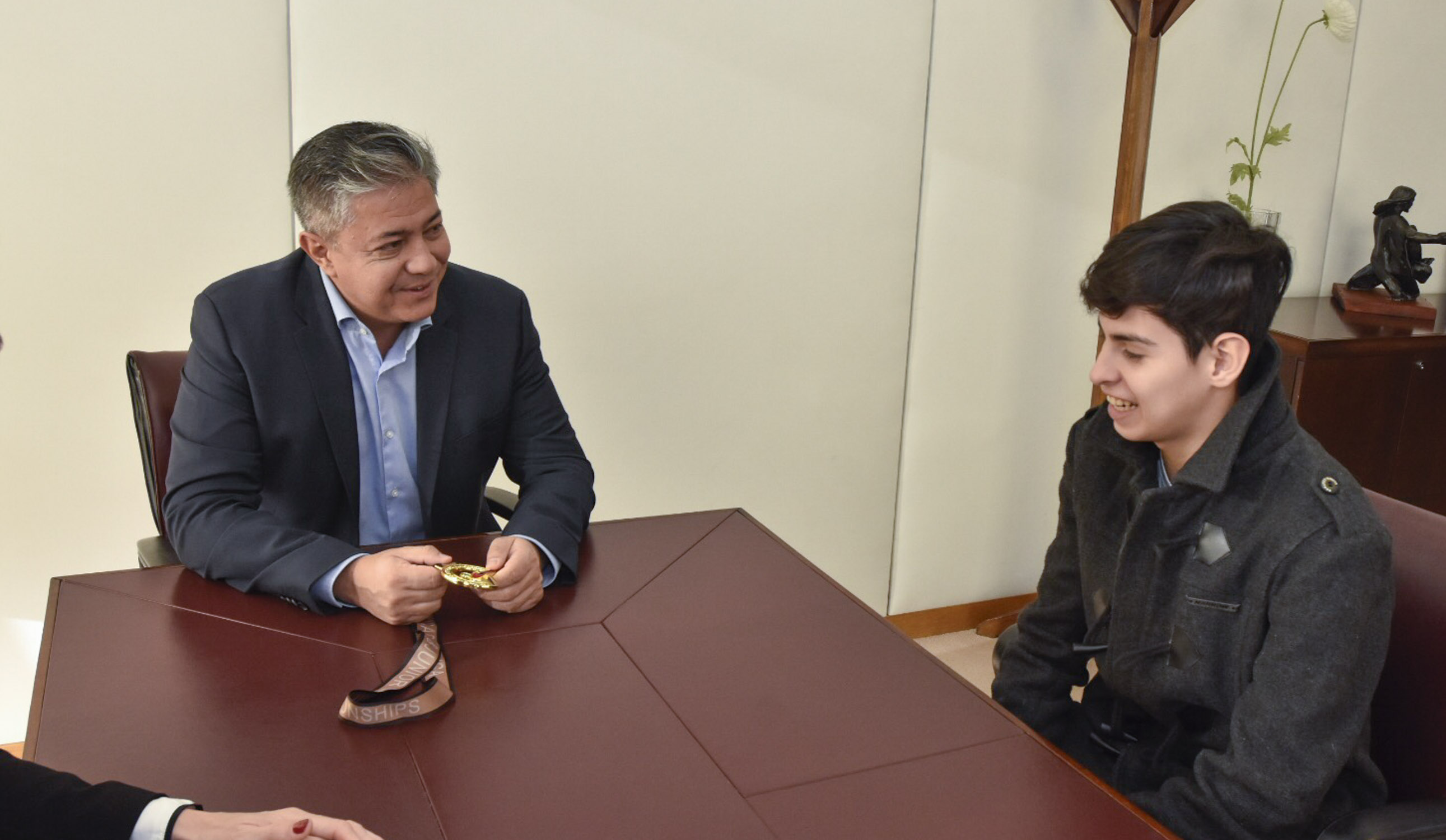 El vicegobernador recibió ayer al que se consagró campeón Panamericano Juvenil en el Oregon Center de la ciudad de Portland, en Estados Unidos. “Es un placer que representes a Neuquén, no solo en lo deportivo sino como ejemplo de esfuerzo para la juventud”, indicó el mandatario.