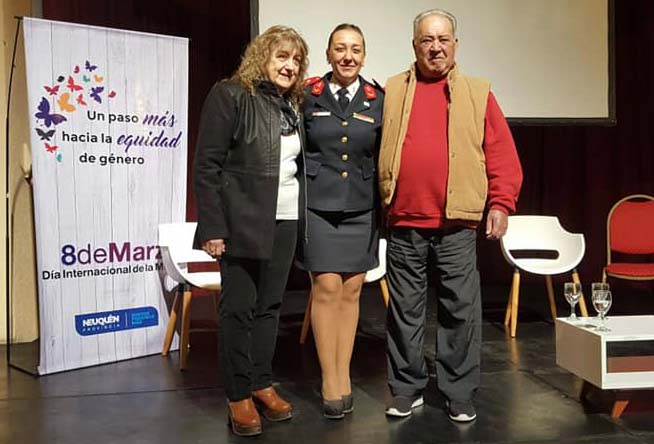 La municipalidad de Villa la Angostura propuso como mujer destacada a Karina Cuevas de Villa La Angostura. Es jefa del Cuerpo Activo de Bomberos Voluntarios y realiza un gran aporte como mujer bombera en el área social y en términos de equidad de género.