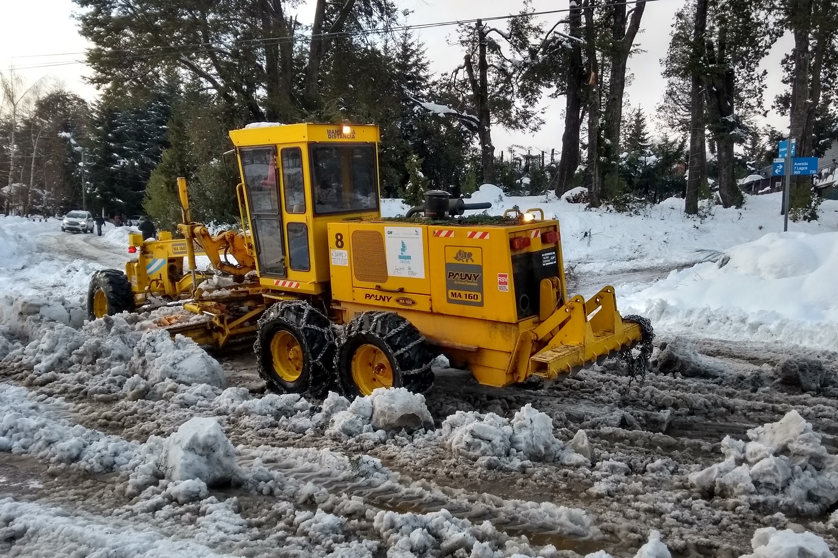 Sobre la limpieza de nieve de las calles, se informa que este jueves también llegarán maquinas viales de Junín y San Martin, disponiendo entonces de 8 máquinas operativas.