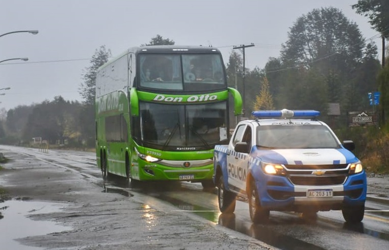 El micro que los trajo era de la empresa Don Otto y el mismo fue escoltado desde Meliquina hasta la localidad por personal policial, luego  ingresó por el Puente del Correntoso donde el secretario Reymundo los acompañó hasta la Terminal de Ómnibus.