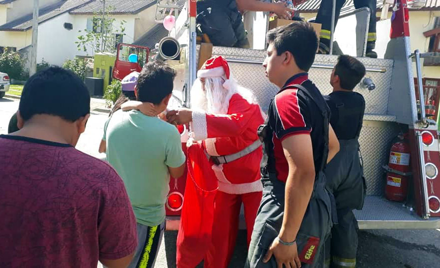 Más de 3.500 bolsitas se repartieron este 24 en el tradicional recorrido de "Papá Noel" y las autobombas. Los chicos esperaban ansiosos en cada esquina para recibir su bolsita de golosinas y una foto, en ese día tan especial.