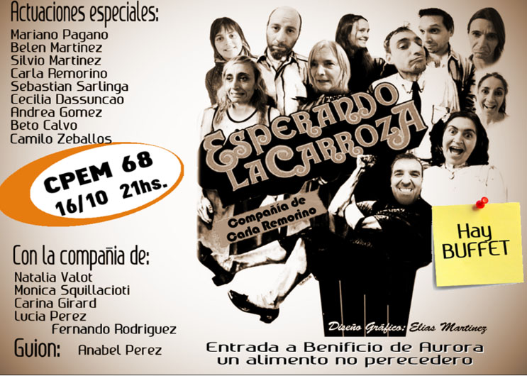 Será este viernes en el CPEM 68 y todo lo recaudado con "Esperando la carroza" será donado a esta institución local. La entrada es un alimento no perecedero.