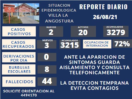 Este jueves por la tarde el hospital informó de 2 contagios, pero 3 pacientes fueron dados de alta. De esta manera son solo 20 los casos activos en nuestra localidad.