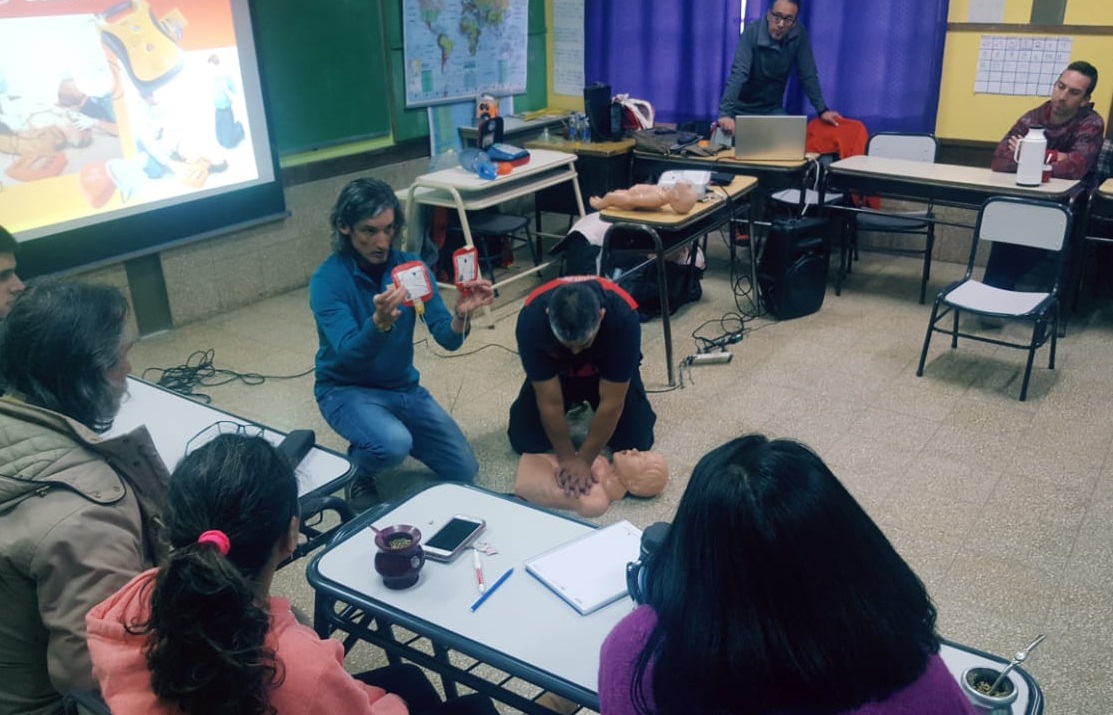Aprovechando la jornada institucional , la dirección de Protección Civil en conjunto con médicos del hospital Arraiz llevaron a cabo una nueva capacitación sobre Reanimación Cardiopulmonar (RCP) para más de 20 docentes, directivos y auxiliares que desempeñan sus tareas en la Escuela 186. También asistieron invitados en su mayoría integrantes de un gimnasio local.