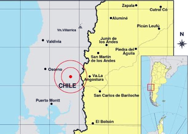 Este jueves se reportó un sismo al sureste de Entre Lagos, en la comuna de Puyehue, Chile, a unos 55 kilómetros de Villa la Angostura. No se reportaron daños.