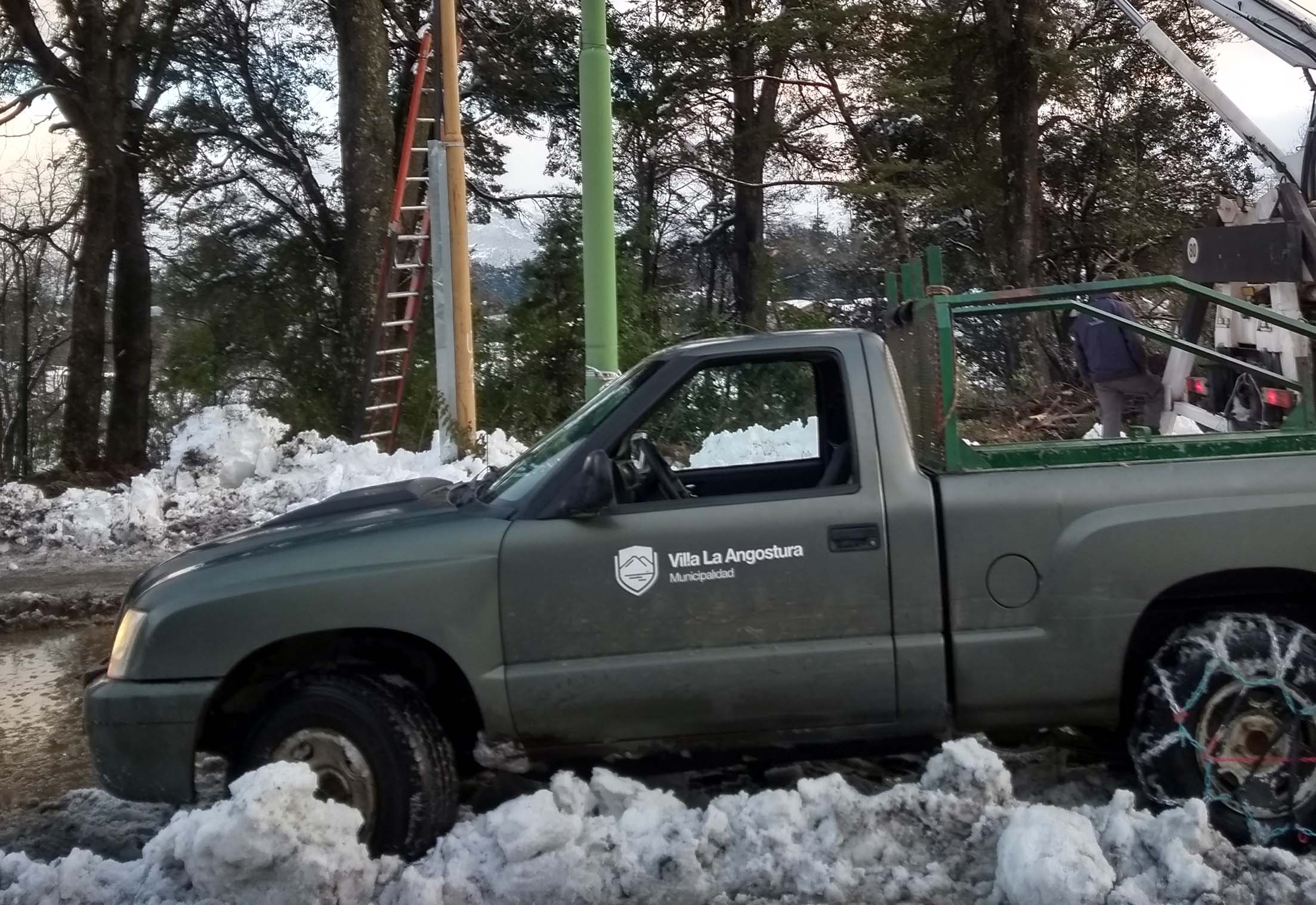 El problema es que siguen cayendo más gajos de árboles por el peso de la nieve y vuelve a generar cortes de tendido eléctrico.