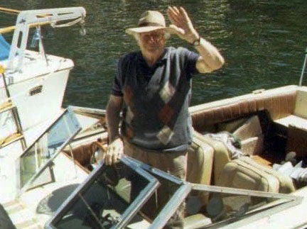 Foto: Frías, presidente por entonces de Cumelén Country Club, estaba en su lancha cuando recibió el alerta por un radioaficionado y salió en ayuda de inmediato.