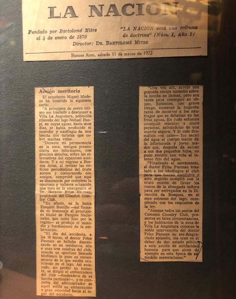 “Entre tanto me entero que en Villa La Angostura habían colocado una cruz, el club Cumelén. Eso me impresionó muchísimo”, sostiene.