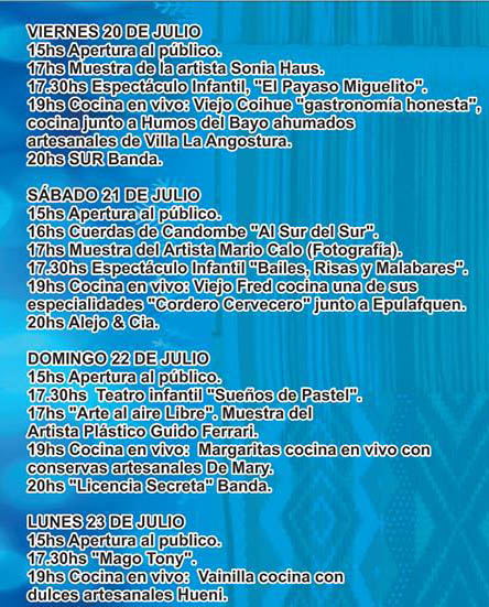 Se realizará del 17 al 23 de julio y contará con espectáculos musicales e infantiles, muestras de fotos, además de exposiciones y ventas de artículos de productores y artesanos locales a muy buen precio.