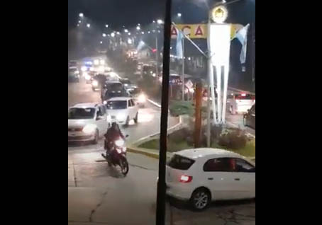 Una caravana de autos se hizo sentir este 25 de mayo por la avenida Arrayanes, reclamando que se levanten las restricciones vigentes,  considerando que hace semanas que no hay casos positivos de coronavirus en la localidad.