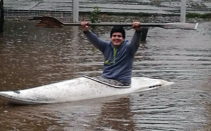 El temporal de viento y lluvia también dejó estas curiosas imágenes en la parte inundada en la plaza de este popular barrio de nuestra localidad.