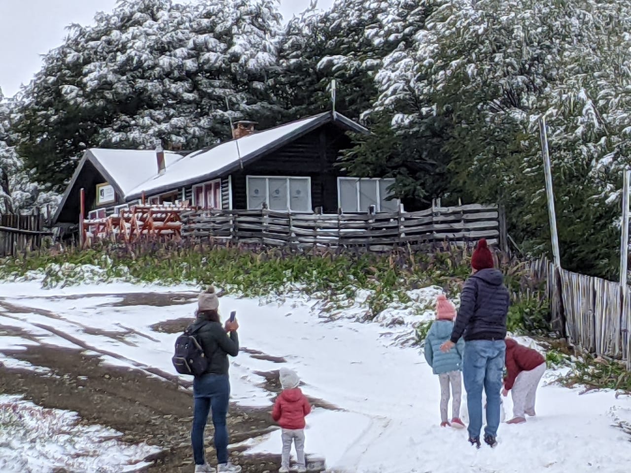 La nieve cayó en silencio durante la madrugada en las montañas y sorprendió esta mañana a los turistas que se encuentran en Villa La Angostura.