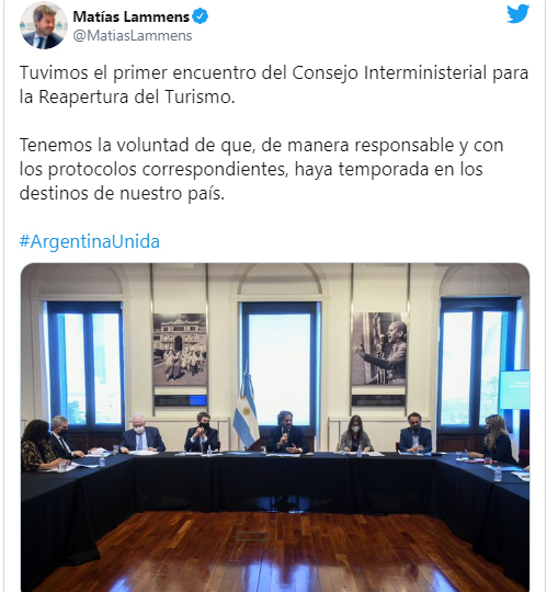 El ministro de Turismo y Deportes, Matías Lammens, aseguró que su cartera tiene la "decisión política de que haya temporada de verano", aunque aclaró que "será una temporada distinta, con muchos cuidados", en el contexto de pandemia de coronavirus.
