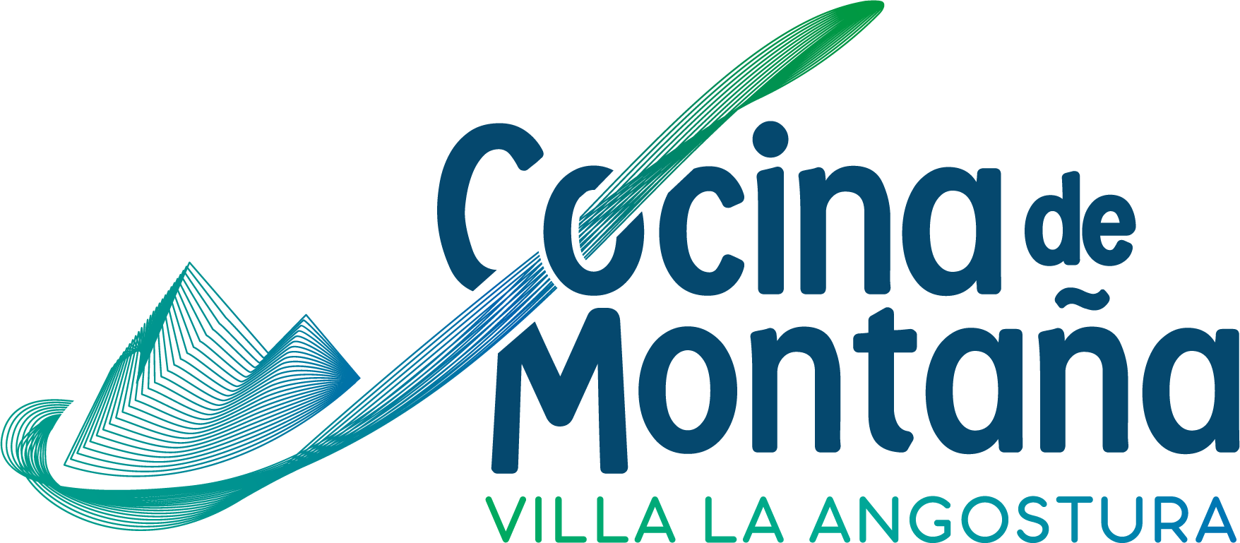 El ísologotipo representa la gastronomía de Villa La Angostura utilizando la forma de un cucharón levantando las montañas , elemento central del paisaje local , representados con las líneas de la marca VLA y sus colores, entrelazado con el título de la marca.