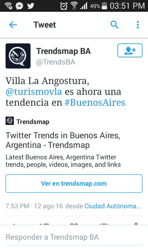 La tarde del viernes Villa La Angostura fue "tendencia" en Twitter en Buenos Aires.Esto quiere decir que en los usuarios de la popular red social visitaron y/o escribieron o "arrobaron" a Villa La Angostura masivamente.